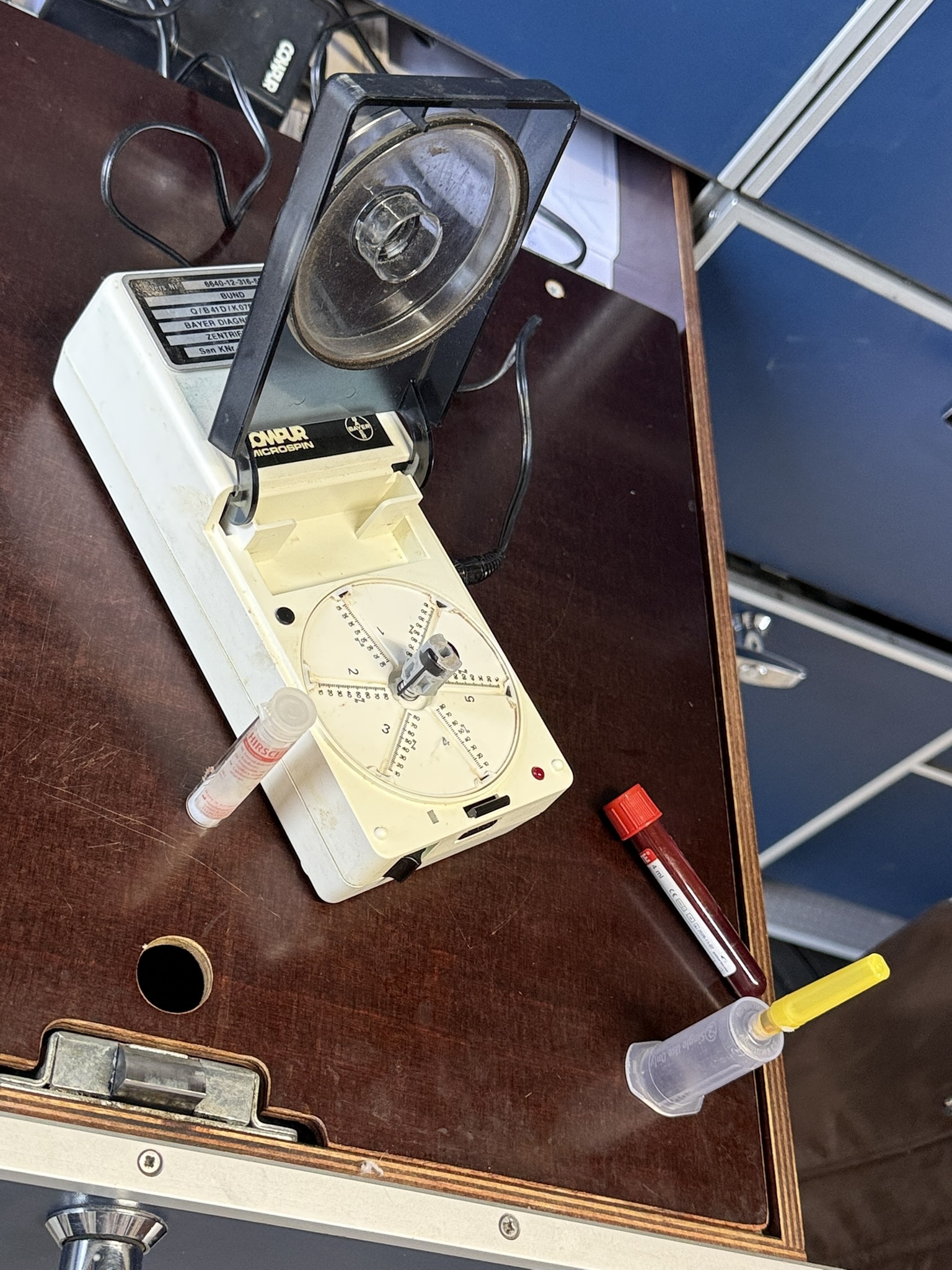 Mit Hilfe einer Mikrohämatokritzentrifuge können wir bestimmte Notfälle in der Fahrpraxis besser einschätzen. Darüber hinaus stehen uns unterschiedliche Laborparameter im Praxisfahrzeug zu Verfügung. Zudem arbeiten wir mit großen tiermedizinischen Speziallabors zusammen (www.laboklin.de und www.vetmedlabor.de), von denen die meisten Labor-Ergebnisse einen Tag nach Probenentnahme vorliegen.